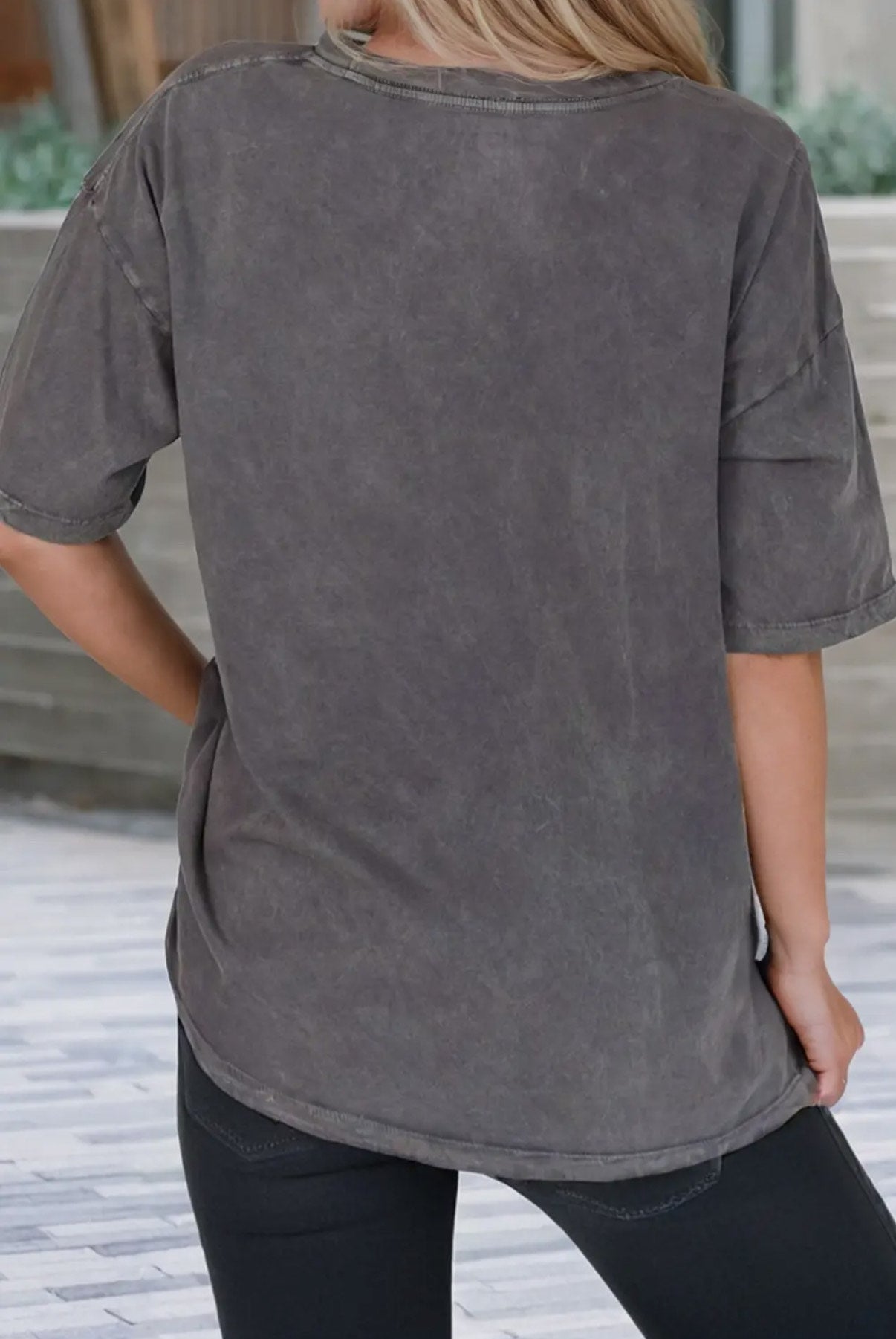 This acid washed black graphic tee features distressed butterflies & a message the whole needs to hear. Fits oversized.